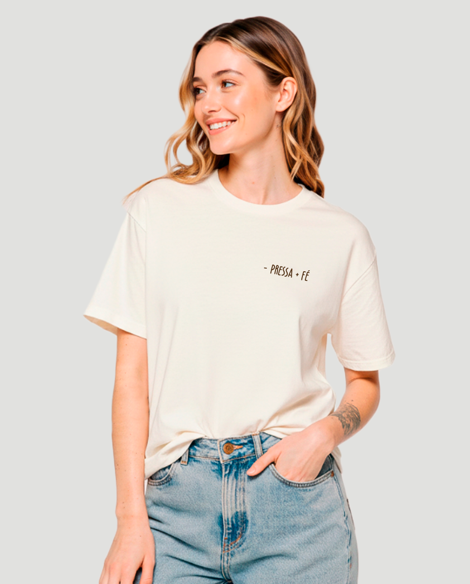 Camiseta Clássica Feminina - Pressa + Fé