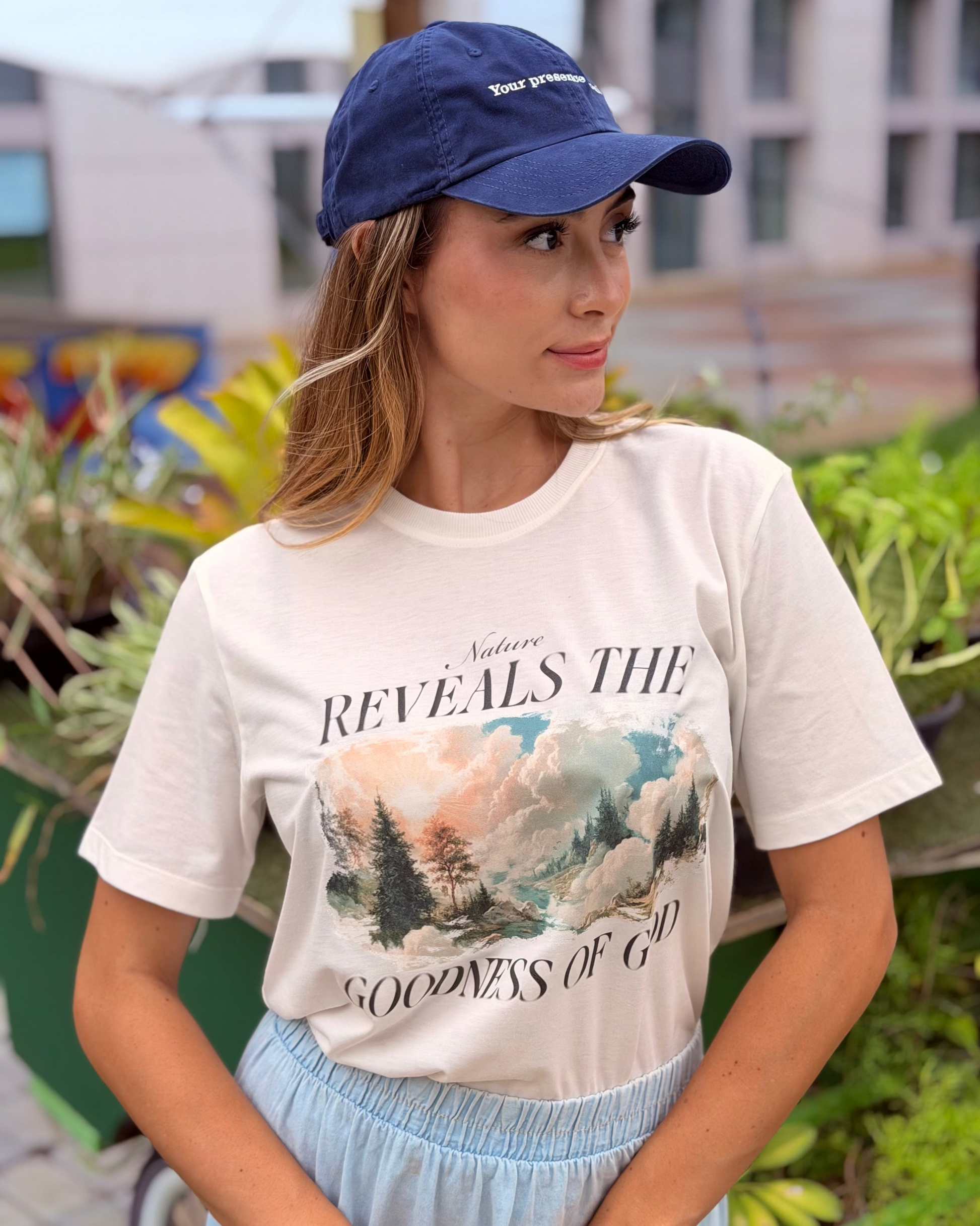 Essa t-shirt foi inspirada na beleza da natureza e em como vemos o cuidado de Deus em cada cuidado através da natureza.